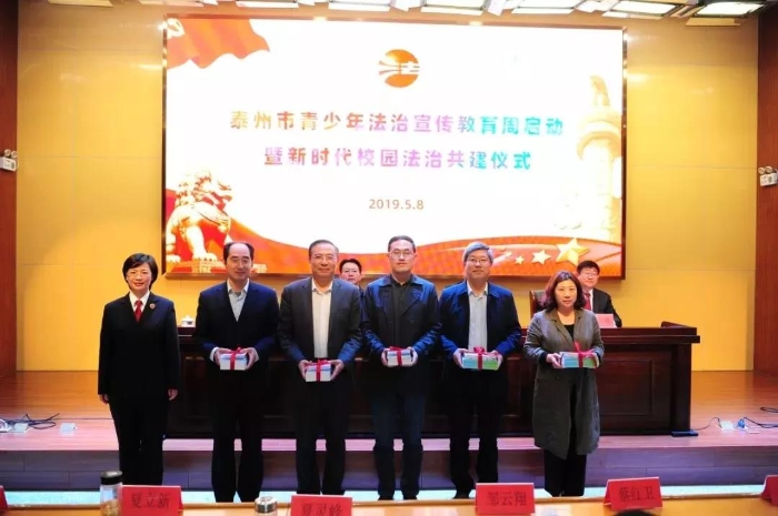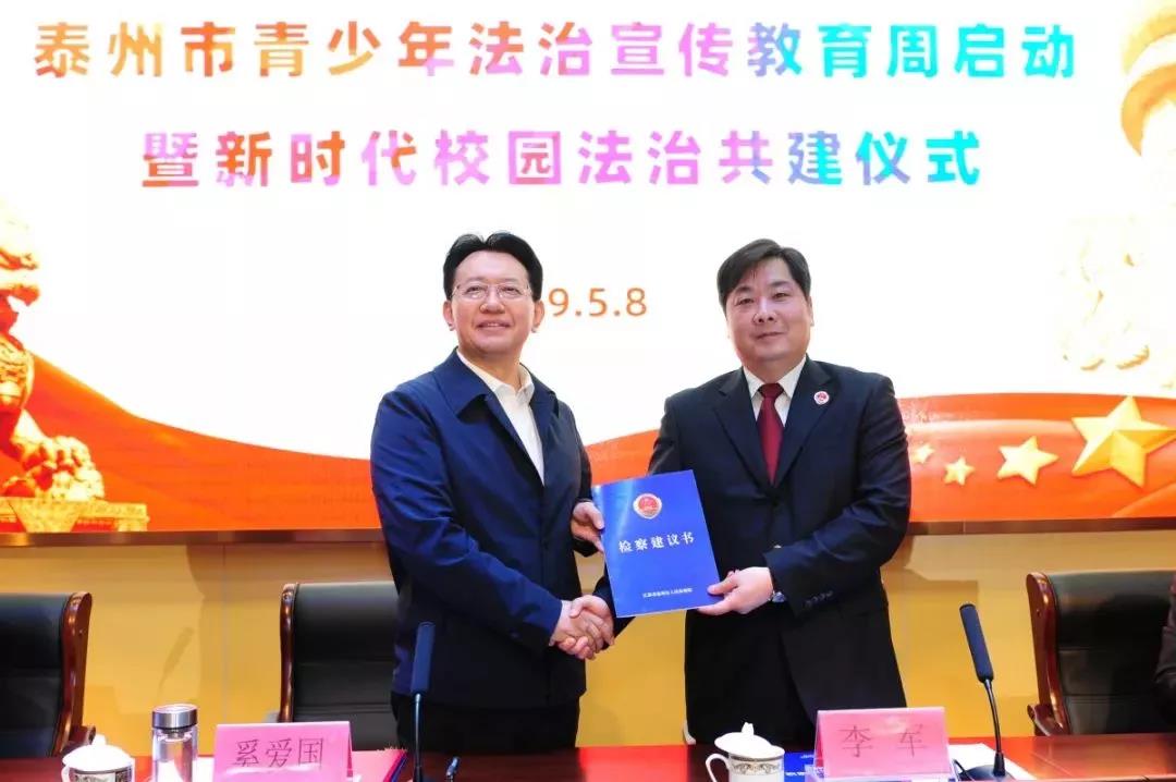 ?為深入推進青少年法治教育,強化未成年人保護工作,5月8日下午,市教育局和市檢察院在江蘇省泰州中學聯(lián)合舉辦青少年法治宣傳教育周啟動暨新時代校園法治共建儀式,市政協(xié)副主席、教育局局長奚愛國,市檢察院檢察長李軍出席儀式并講話。市檢察院副檢察長陸紅梅、鄒云翔、蔡紅衛(wèi)、檢委會專職委員華為民等參加活動?;顒佑墒薪逃指闭{(diào)研員朱三峰主持。 市政協(xié)副主席、教育局局長奚愛國出席儀式并講話