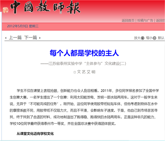《中國(guó)教師報(bào)》專(zhuān)版介紹我校課改之路