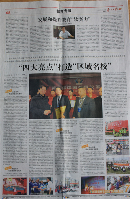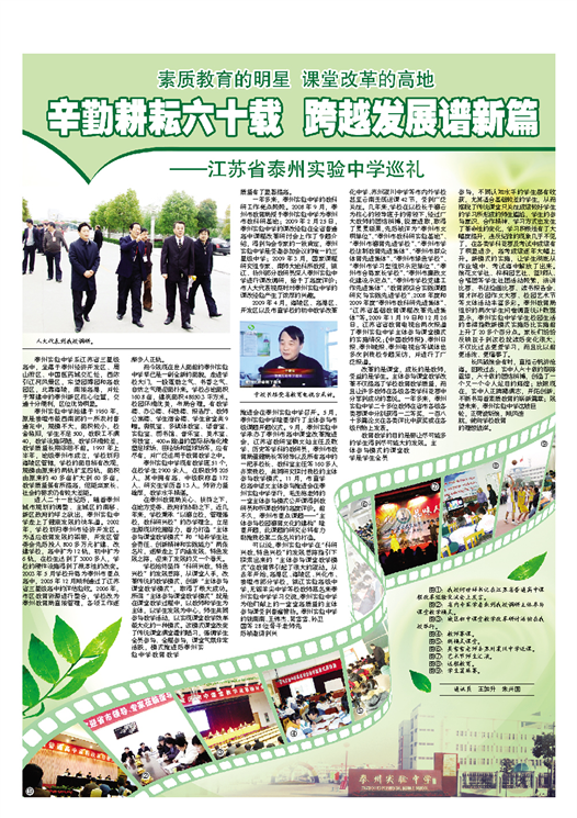 《泰州日?qǐng)?bào)》專(zhuān)版報(bào)道我校推進(jìn)教育教學(xué)改革和學(xué)校各項(xiàng)建設(shè)工作
