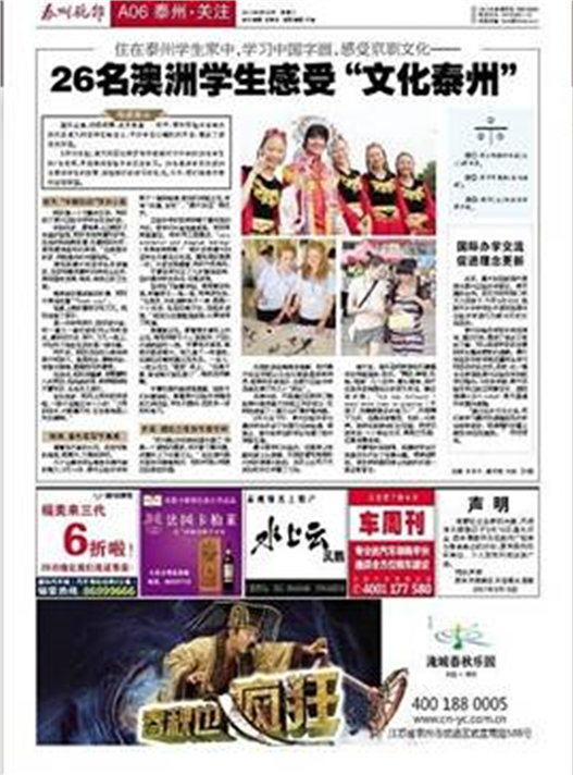 《泰州晚報(bào)》專(zhuān)題報(bào)到我校國(guó)際交流情況