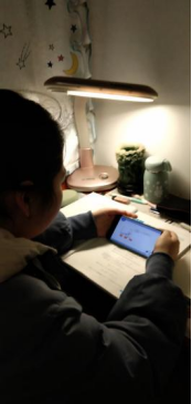 線上學習時,各班主任教育學生注意電子產(chǎn)品的用眼衛(wèi)生,要求學生坐姿端正,不彎腰駝背,保持適當?shù)拈喿x距離,手機0.33-0.4米,電腦0.4-0.7米,電視3米以上,雙眼平視或輕度向下注視屏幕。屏幕亮度舒適,不能在暗處觀看,要有舒適的環(huán)境照明,且目光不能直射眼睛、電子屏幕。