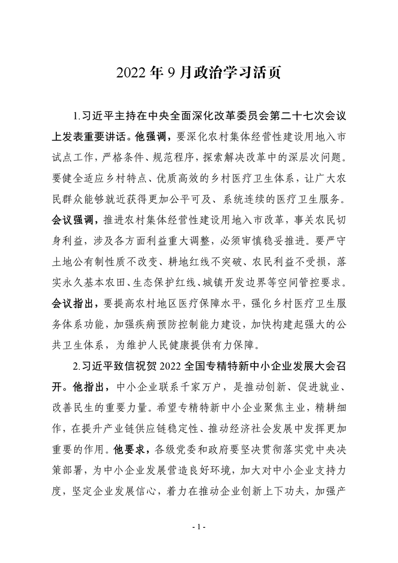 2022年9月政治學(xué)習(xí)活頁(yè)