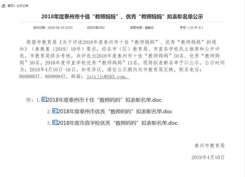 2018年度市直學(xué)校優(yōu)秀“教師媽媽”擬表彰名單