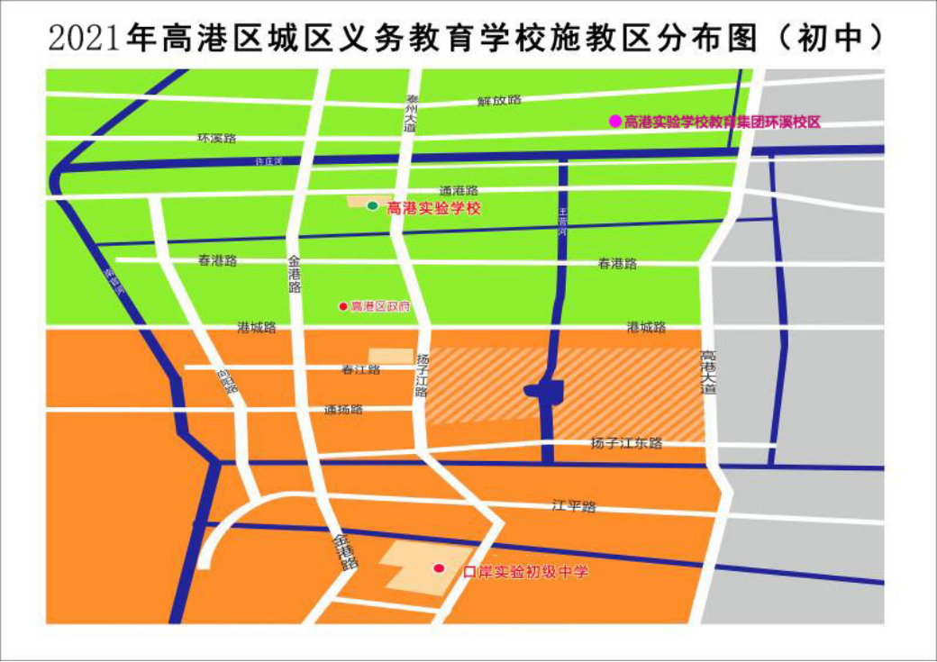 高港區(qū)義務教育階段學校施教區(qū)(初中)