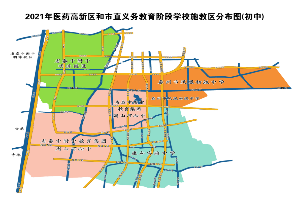 海陵區(qū)和“市直學校與醫(yī)藥高新區(qū)學校教育共同體”施教區(qū)(初中)