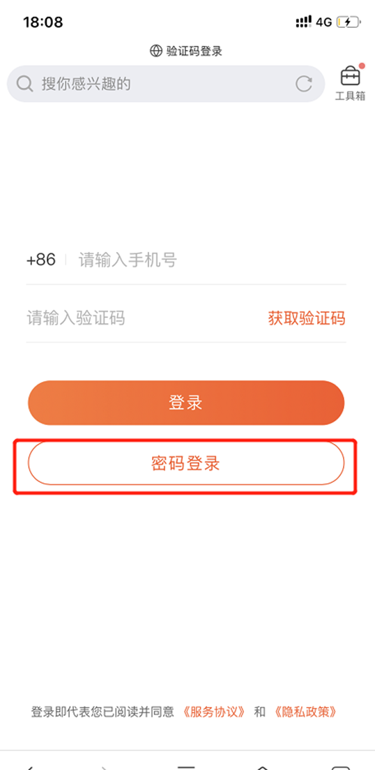 2.點(diǎn)擊密碼登錄