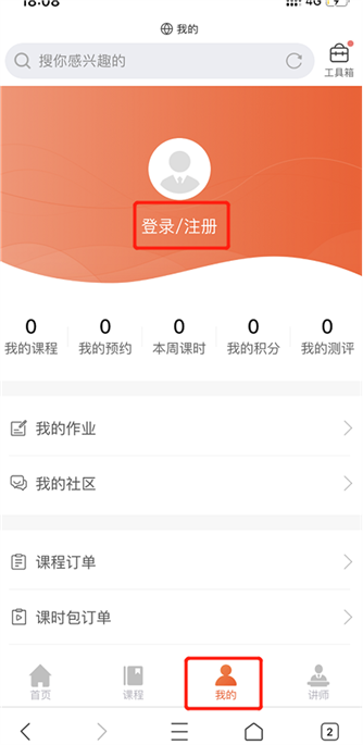 1.打開(kāi)移動(dòng)端軟件,點(diǎn)擊我的,登錄注冊(cè)