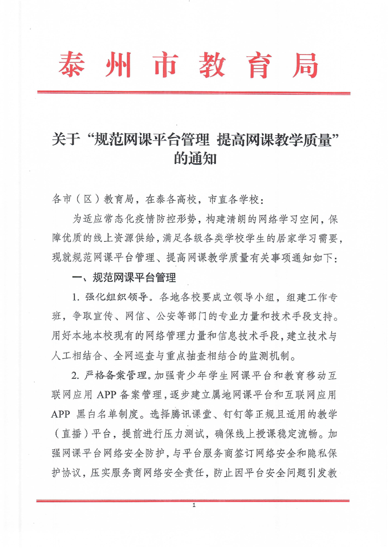 關(guān)于“規(guī)范網(wǎng)課平臺(tái)管理 提高網(wǎng)課教學(xué)質(zhì)量”的通知
