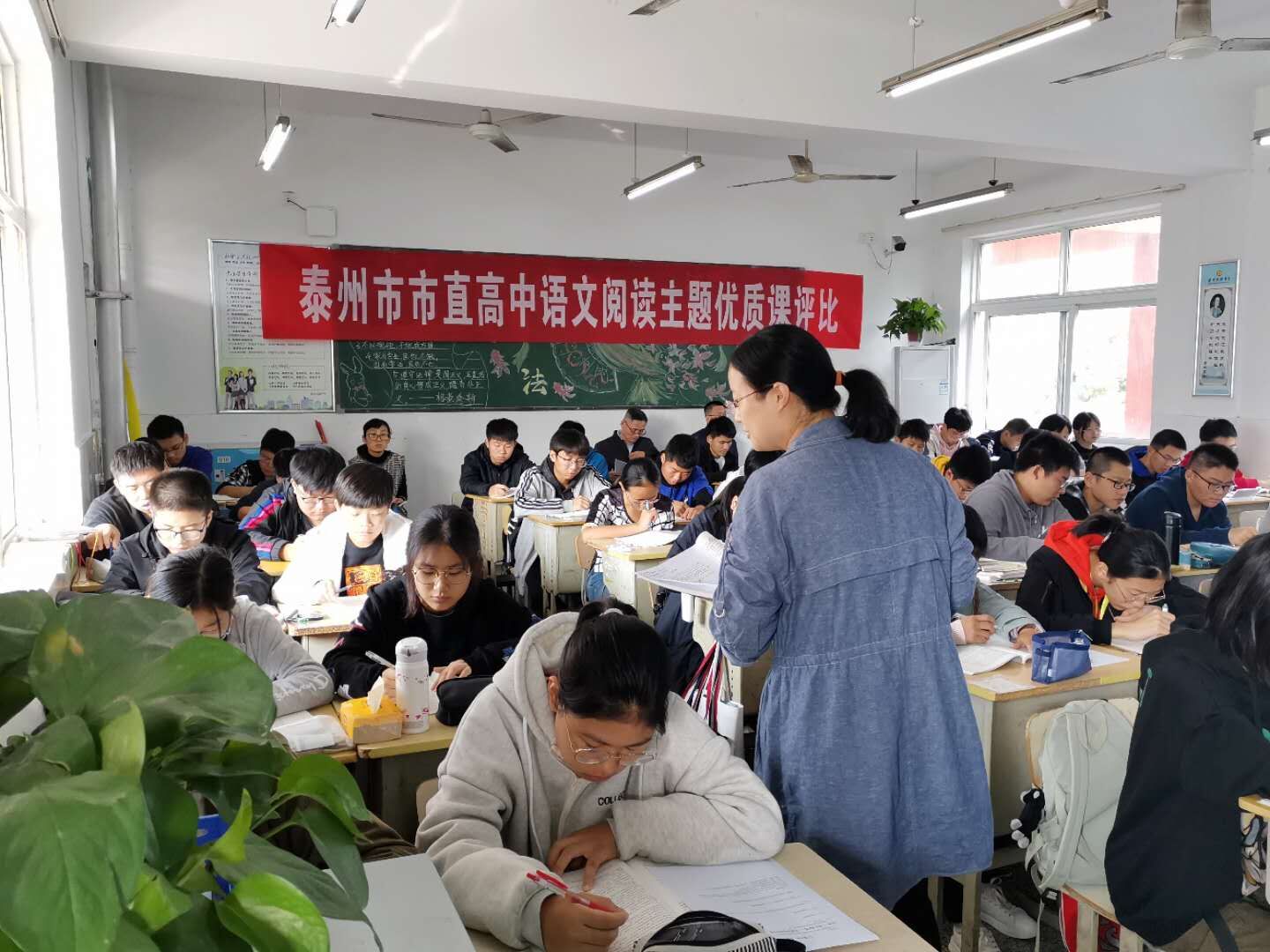 10月12日上午泰州市市直學?!案咧姓Z文閱讀主題優(yōu)質課評比”在我校舉行。市教研室副主任周仕龍及全市專家評委一行7人蒞臨我校,對來自市直學校的11位參賽老師進行分組聽課、評定打分。