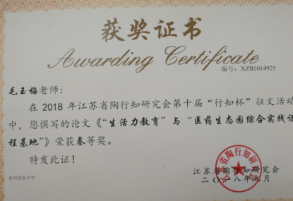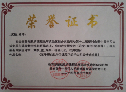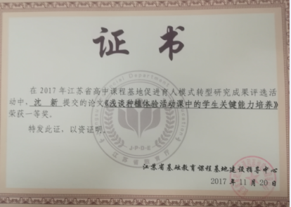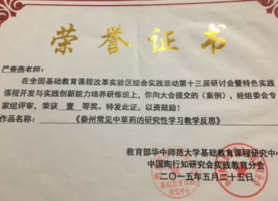 5、教師課程開發(fā)意識不斷增強(qiáng)。教師們投身課程基地建設(shè),把綜合實(shí)踐活動這一國家課程,依據(jù)校情、學(xué)情進(jìn)行校本化,自身的專業(yè)素養(yǎng)得到了提高,同時(shí)跨學(xué)科協(xié)同能力也有了提升,校本課程開發(fā)使一部分老師找到了施展才華的空間。在課程基地的建設(shè)引領(lǐng)下,我校多為老師撰寫的綜合實(shí)踐活動相關(guān)論文獲獎。同時(shí)我校沈新老師在市綜合實(shí)踐活動說課比賽中獲一等獎。我校姚小林老師申報(bào)的市級立項(xiàng)課題《基于省級課程基地提升學(xué)生學(xué)科素養(yǎng)的實(shí)踐研究》已于2015年結(jié)題。