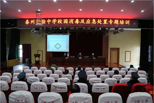 為進(jìn)一步加強(qiáng)學(xué)校應(yīng)對新冠肺炎防控能力,有效做好校園各項防控工作, 3月10日上午,學(xué)??倓?wù)處在校長室統(tǒng)一部署下組織學(xué)校安管處負(fù)責(zé)人、班主任代表、后勤工作人員、食堂工作人員和安保人員在報告廳召開泰州實驗中學(xué)校園消毒及應(yīng)急處置專題培訓(xùn)會。培訓(xùn)會邀請醫(yī)藥高新區(qū)寺巷人民醫(yī)院感染科韓興紅主任給參會人員作校園消毒及應(yīng)急處置專業(yè)知識的培訓(xùn),學(xué)校黨委書記、校長卞玉年出席培訓(xùn),會議由總務(wù)處主任張建華主持。