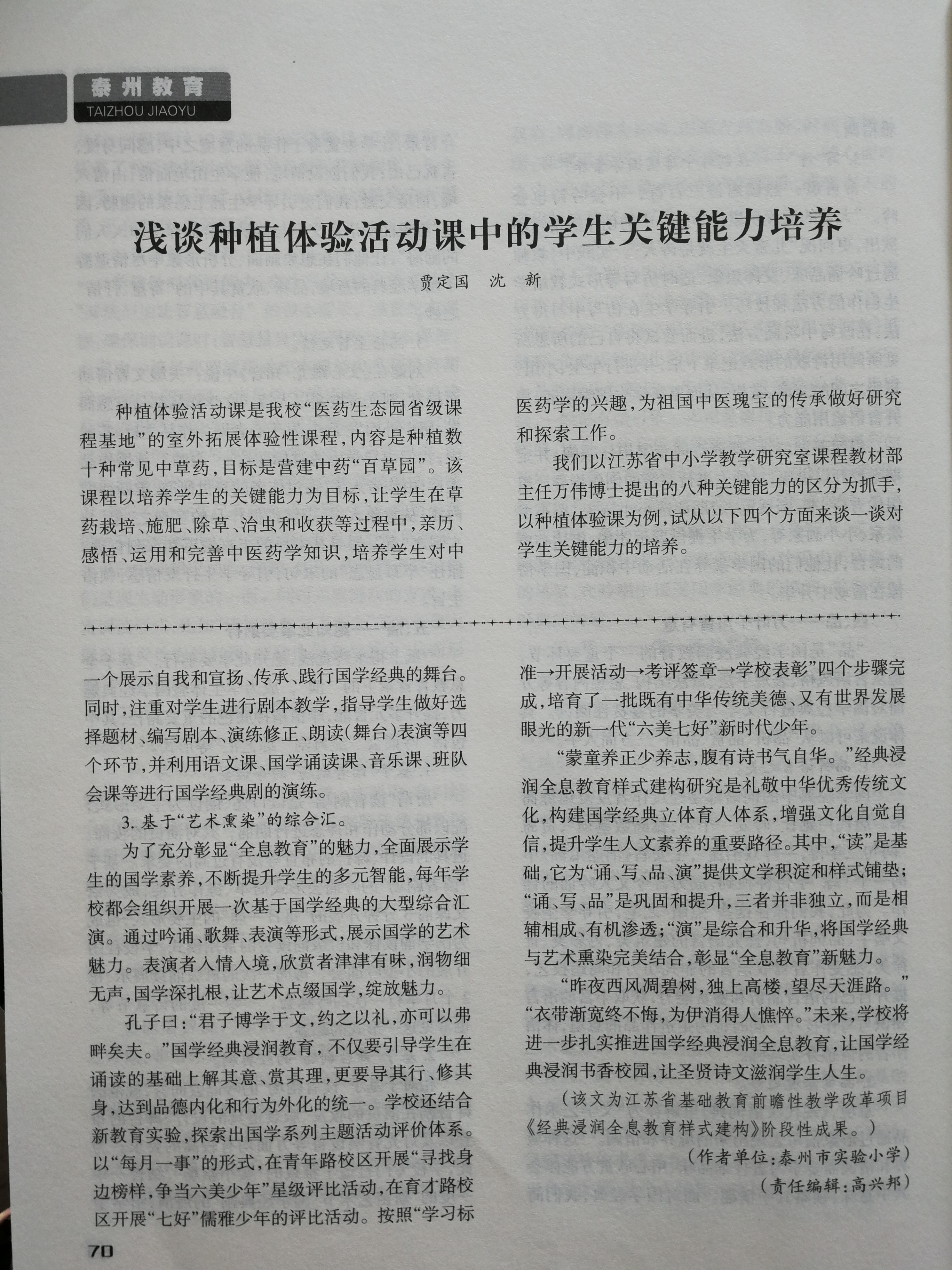 淺談種植體驗(yàn)活動(dòng)課中的學(xué)生關(guān)鍵能力培養(yǎng)