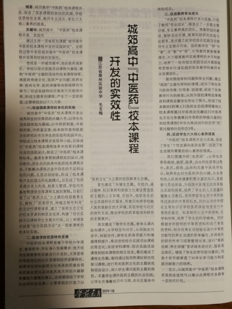 城郊高中“中醫(yī)藥”校本課程開發(fā)的實(shí)效性
