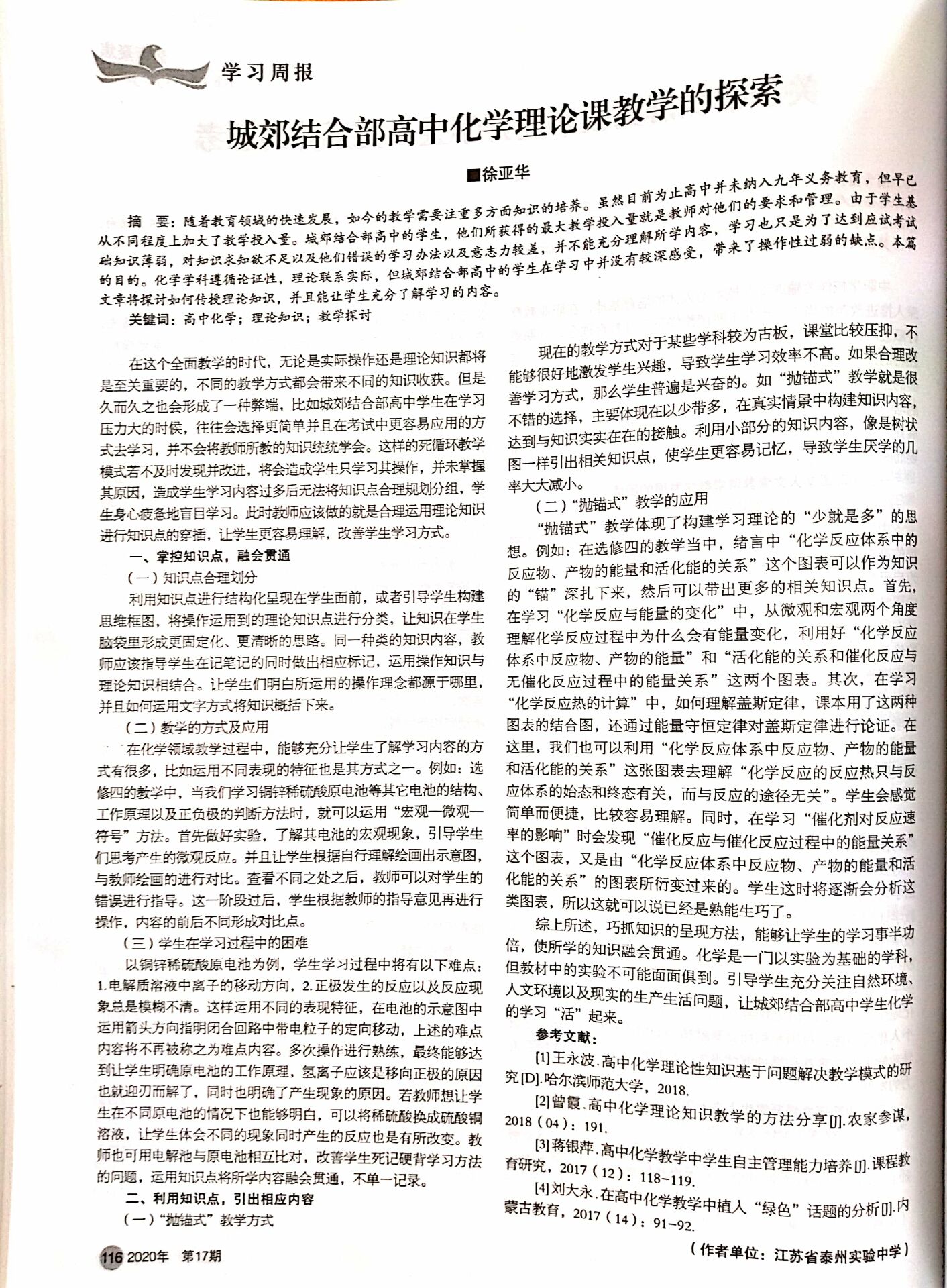 城郊結(jié)合部高中化學(xué)理論課教學(xué)的探索