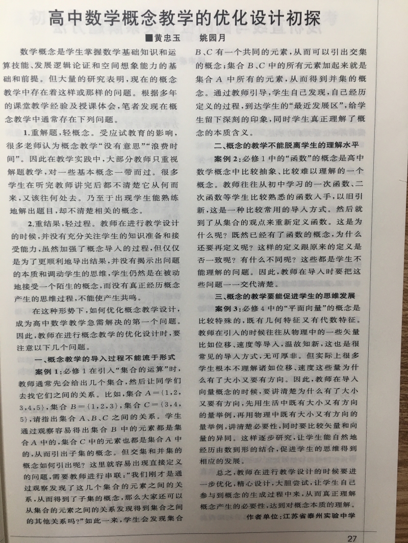 高中數(shù)學(xué)概念教學(xué)的研究初探