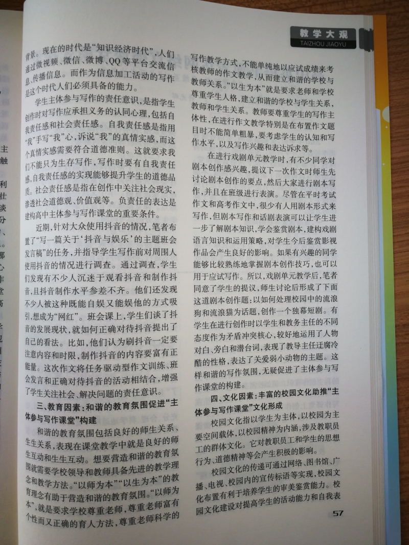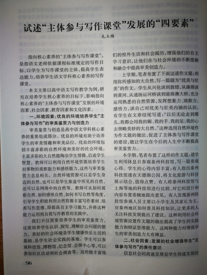 試述“主體參與寫作課堂”發(fā)展的“四要素”