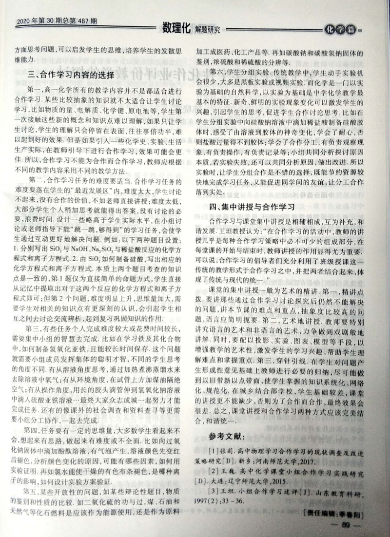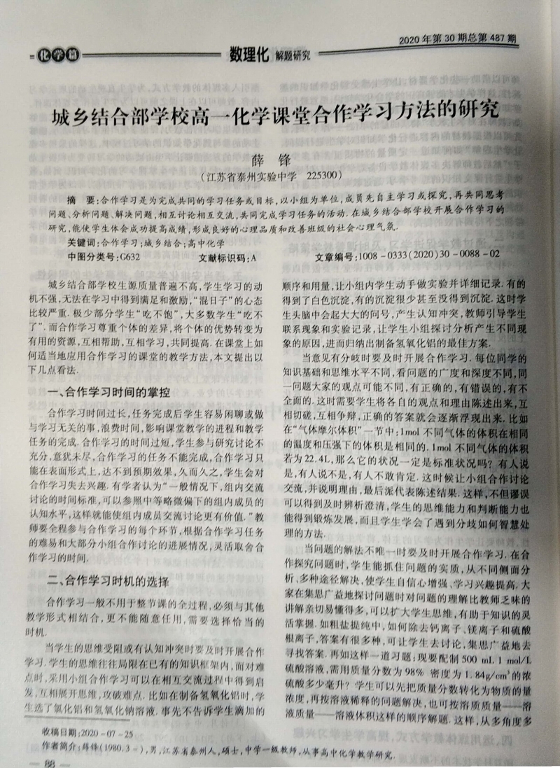 城鄉(xiāng)結(jié)合部高一化學(xué)課堂合作學(xué)習(xí)方法的研究