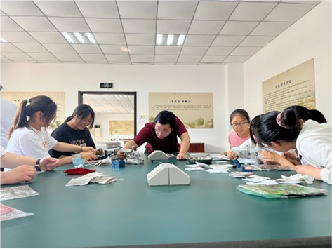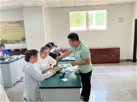 陳璟和單鑫兩位老師為學(xué)生講授香囊的制作過(guò)程并指導(dǎo)學(xué)生進(jìn)行手工香囊的制作。劉晨老師指導(dǎo)學(xué)生進(jìn)行常見(jiàn)中藥材的鑒定。