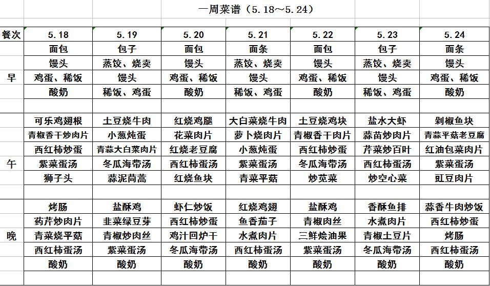 一周菜譜(5.18~5.24)