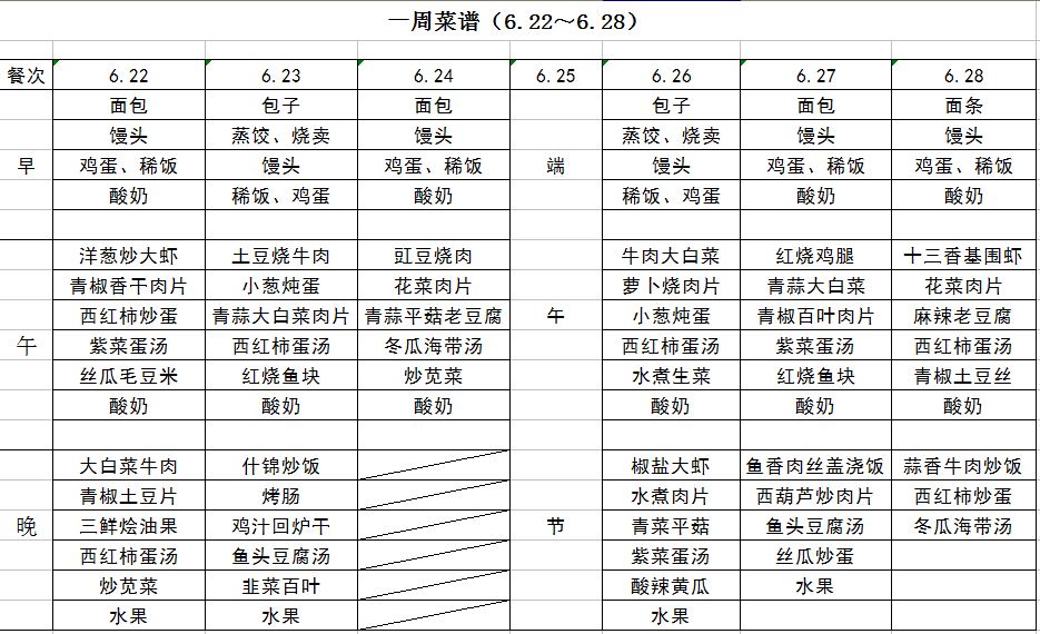 每周菜譜(6.22—6.28)