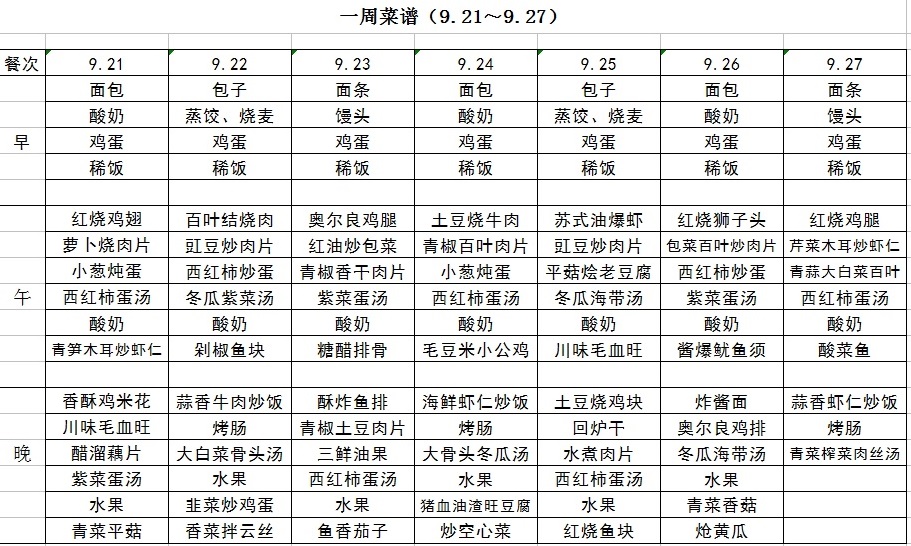 一周菜譜(9.21~9.27)