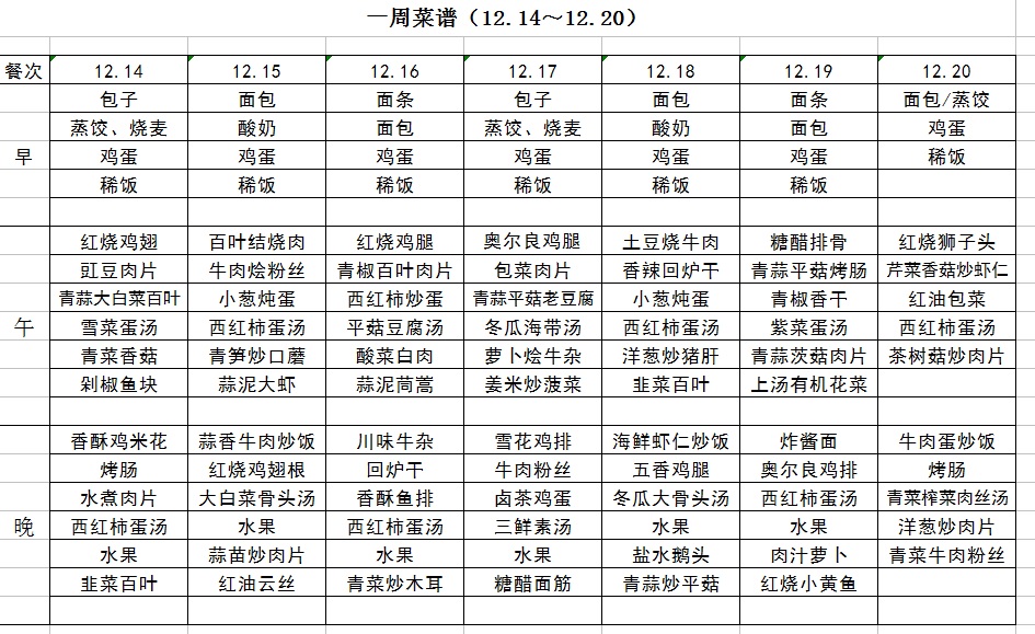 一周菜譜(12.14~12.20)
