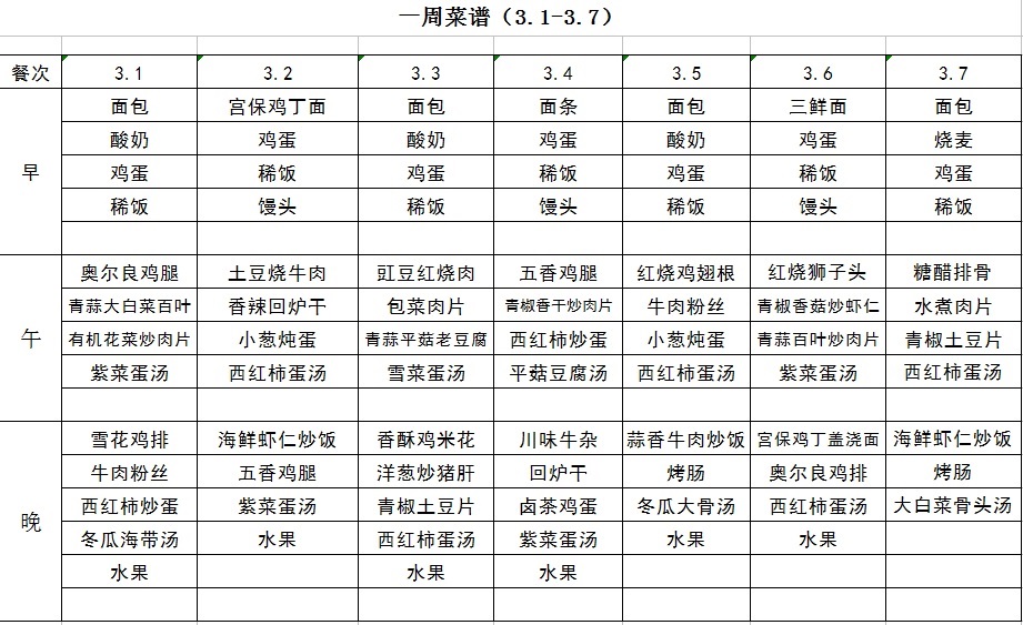 一周菜譜(3.1~3.7)