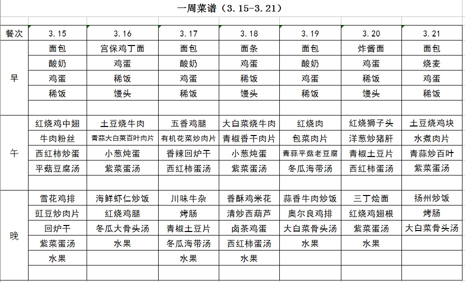 一周菜譜(3.15~3.21)