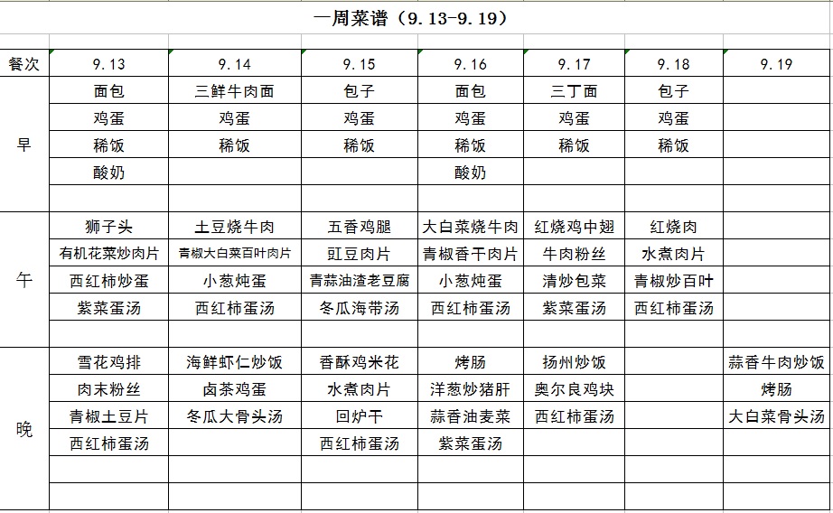 一周菜譜(9.13~9.19)