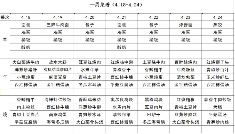 每周菜譜(4.18-4.24)