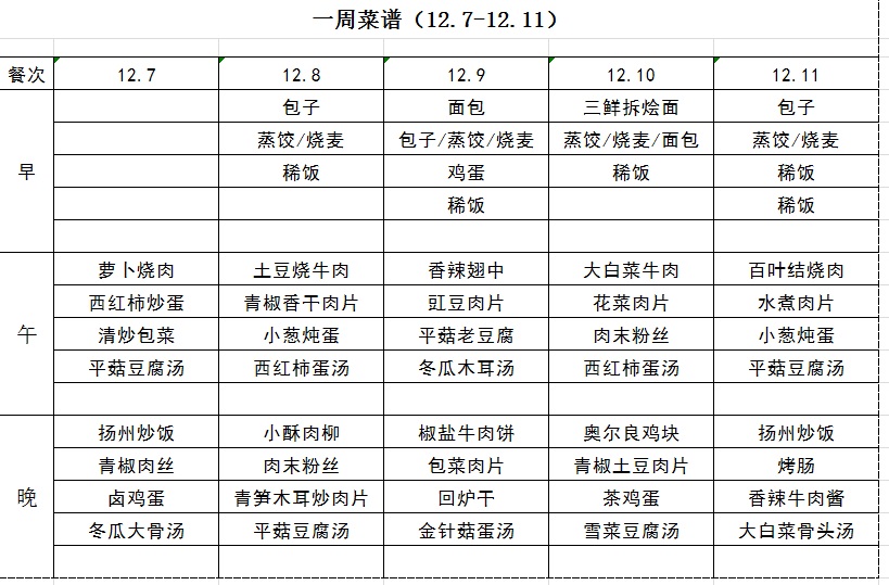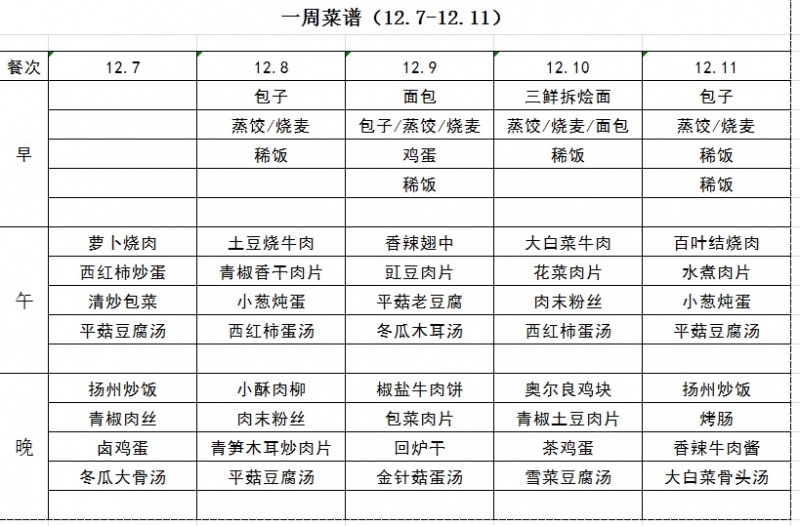 一周菜譜(12.7-12.11)