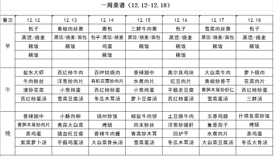一周菜譜(12.12-12.18)