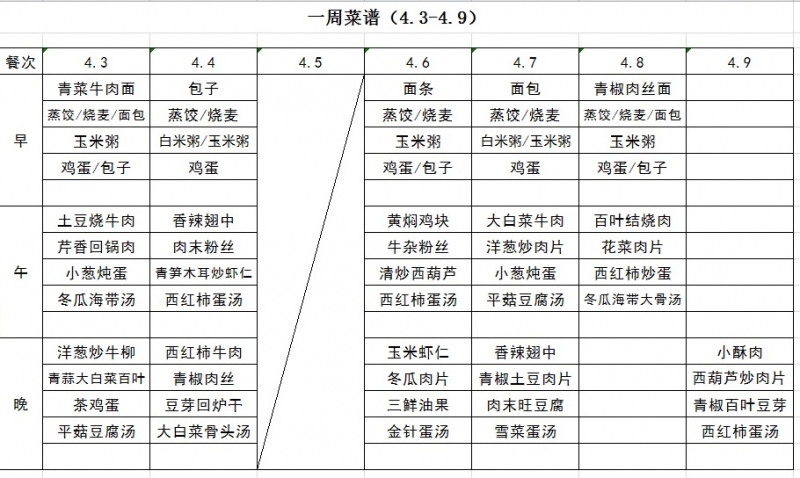 一周菜譜(4.3-4.9)