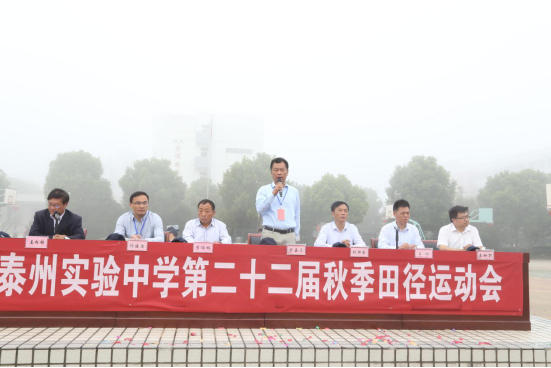 開幕式上,校旗手護(hù)衛(wèi)紅旗和校旗入場,各班組成方陣,班級代表高舉班旗,運動員們邁著整齊有力的步伐,喊著積極向上的口號,伴著激昂的運動員進(jìn)行曲,整齊有序地進(jìn)入會場。王彬副校長致開幕詞,他強調(diào)習(xí)近平總書記在十九大報告中指出要“廣泛開展全民健身活動,加快推進(jìn)體育強國建設(shè)”,而體育強國依靠體育教育,體育教育的基礎(chǔ)在學(xué)校,長期以來,我校十分重視體質(zhì)健康教育,大課間陽光體育活動正常開展,學(xué)生體質(zhì)健康達(dá)標(biāo)率逐步提高,運動會一屆強過一屆。他希望運動員發(fā)揚頑強拼搏的體育精神,以積極正確的心態(tài)參加比賽。接著裁判員代表和運動員代表宣誓。在黨委書記、校長卞玉年鏗鏘有力的宣布聲中本屆運動會正式開始。