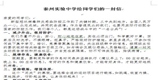 在這場特殊的戰(zhàn)役中,學(xué)校黨委倍加惦記、牽掛著同學(xué)們的健康與平安。為了共同做好疫情防控工作,讓同學(xué)們和家人度過一個(gè)健康平安的寒假,黨委擬定了《給學(xué)生的一封信》,黨辦主任吳長根同志通過“空中課堂”給全校學(xué)生宣講正確的疫情預(yù)防措施,消除學(xué)生的恐慌心理,樹立信心,引導(dǎo)學(xué)生及家長正確面對(duì)疫情,打贏疫情防控攻堅(jiān)戰(zhàn)。