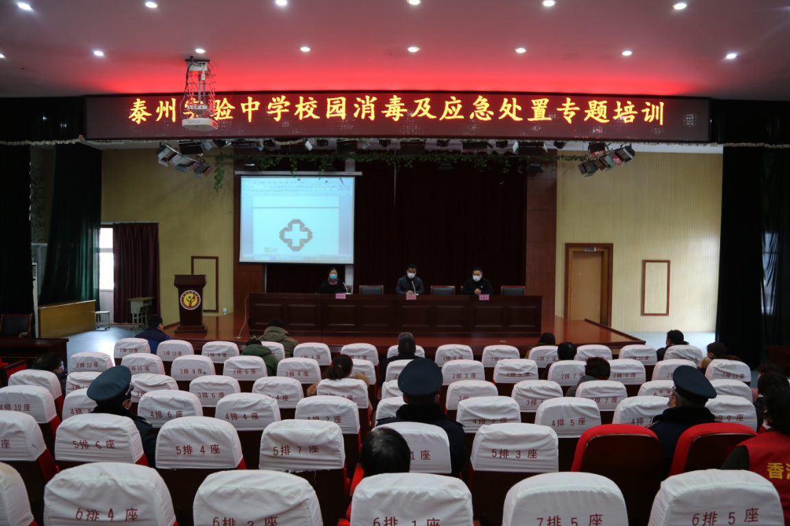 為進(jìn)一步加強(qiáng)學(xué)校應(yīng)對(duì)新冠肺炎防控能力,有效地防控流行性疾病在校園傳播,提升學(xué)校各崗工作人員衛(wèi)生知識(shí)水平,強(qiáng)化校園環(huán)境消殺工作和應(yīng)急處置技能,3月10日上午,泰州實(shí)驗(yàn)中學(xué)邀請(qǐng)寺巷人民醫(yī)院感染科韓興紅主任,在報(bào)告廳召開校園消毒及應(yīng)急處置專題培訓(xùn)會(huì)。安管處負(fù)責(zé)人、班主任代表、后勤工作人員、食堂工作人員和安保人員參加了此次培訓(xùn)。會(huì)議由總務(wù)處主任張建華主持。