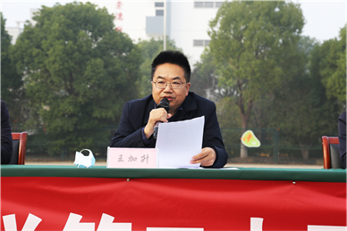 在全體師生奏唱莊嚴的國歌后,副校長王加升致開幕詞。首先,他向全體師生說明了今年運動會因為疫情等多種因素延期舉辦的情況;然后,他肯定了運動會的籌備工作,強調(diào)了田徑運動會對我校教育工作的重要意義,贊揚了我校同學在市直學?;@球比賽和四星級高中創(chuàng)建現(xiàn)場評估等活動中取得的成績;最后,他預(yù)祝本屆運動會取得圓滿成功。